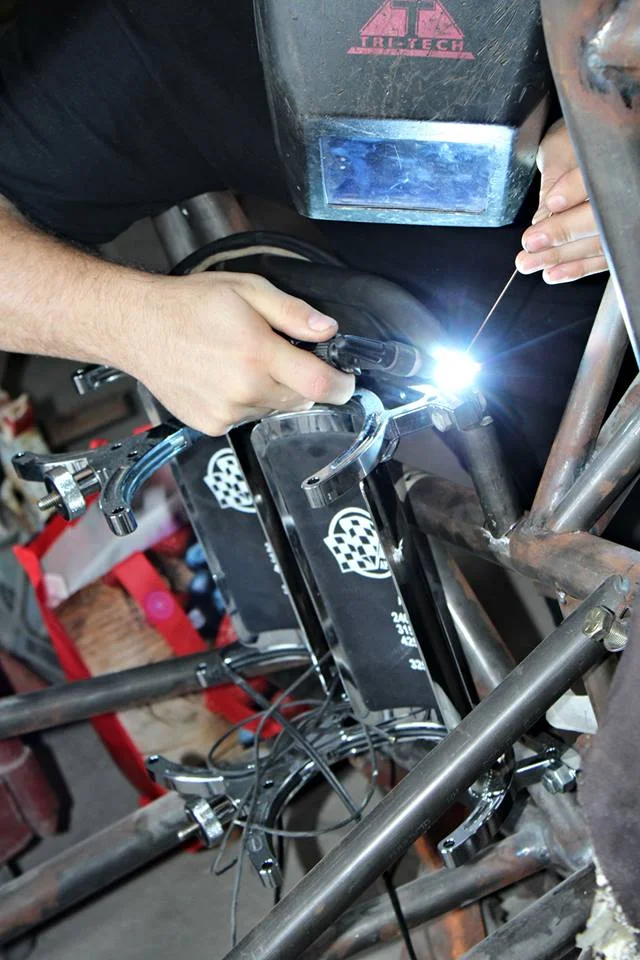 from tuning the nitrous to clutch. He is the brain in our operation. My uncle, Mark Voss, handles the Rear of the car. tires, center section, and fabrication. He can fix anything and is a great problem solver. Ricard Earle, of Suncoast Racecars is always on our team overseeing the operation, guiding us, and teaching in the ever-evolving sport of drag racing. and I, handle the driving duties, I’m the "monkey in the seat"