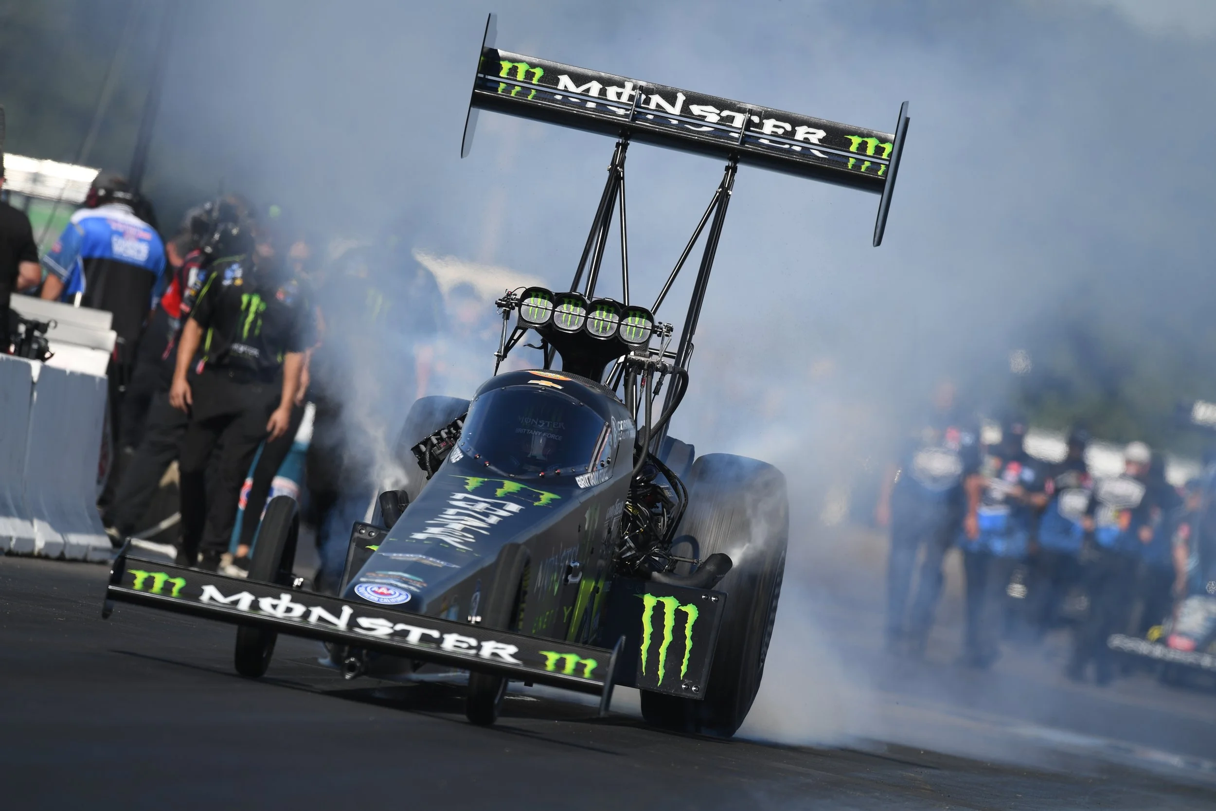 “Interesting weekend for our Monster Energy / Flav-R-Pac team at BIR this weekend. We made three great runs during qualifying, our best a 3.661 at 334 mph that pushed us to the top. Today we improved in E1 running a 3.646 333,” Force said. “In the second round we had to work for it. The warmer track made for big changes for everyone. The car went up in smoke and I pedaled for the win light. Unfortunately, in the semis, we didn't have the same luck. Our car got up on the tires right at the hit and that was it for us. We kept the points lead and plan to turn this thing around in a couple weeks at the U.S. Nationals in Indiana.”