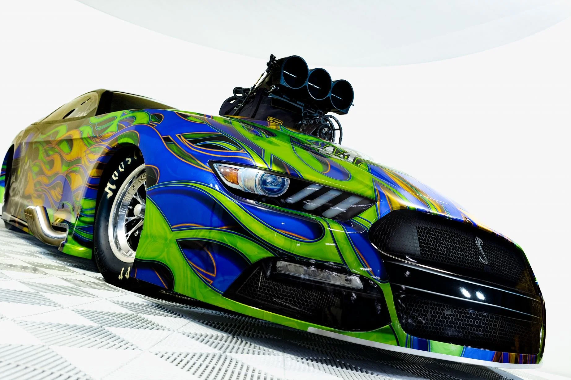 The new Lethal Threat Pro Mod is a 2023 Mustang built by Larry Jeffers Race Cars with a 526CI PJS Racing powerplant. The Mustang sports a FuelTech EFI fuel system with a PSI Supercharger and a 3-speed Lenco Transmission.
