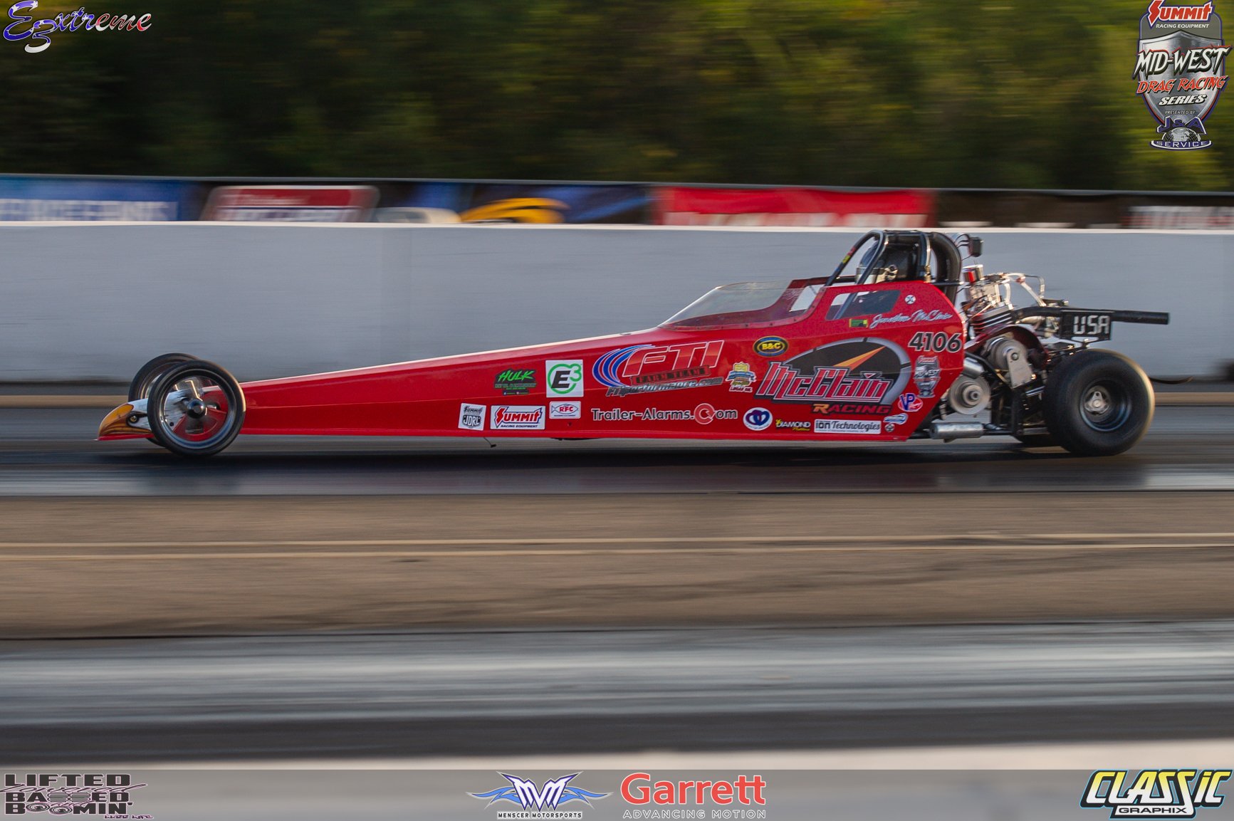 02 Spitzer 4 link Jr. Dragster, Team McClain Racing, Sponsors:Ftifarmteam,Trailer-Alarms.com,E3sparkplugs,Hulkhatco,blenderseyewear, Race-Star Wheels, Fuel-Tech.